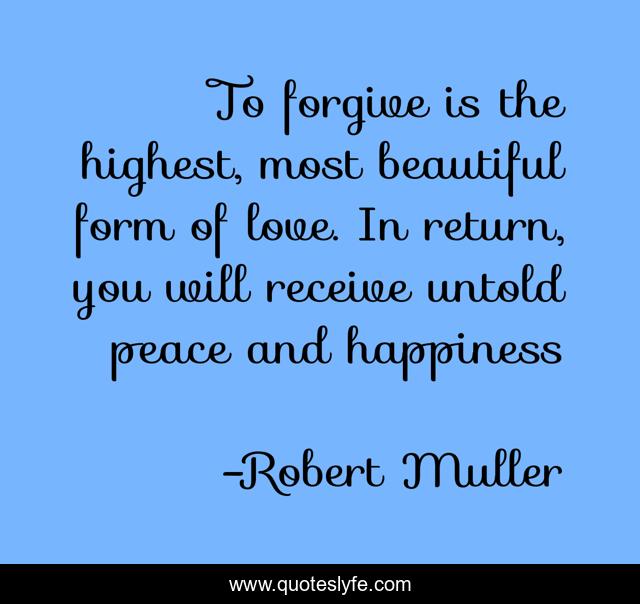 This page presents the quote "To forgive is the highest, most beautiful form of love. In return, you will receive untold peace and happiness". Author of this quote is Robert Muller. This quote is about enthusiasm, inspirational,.