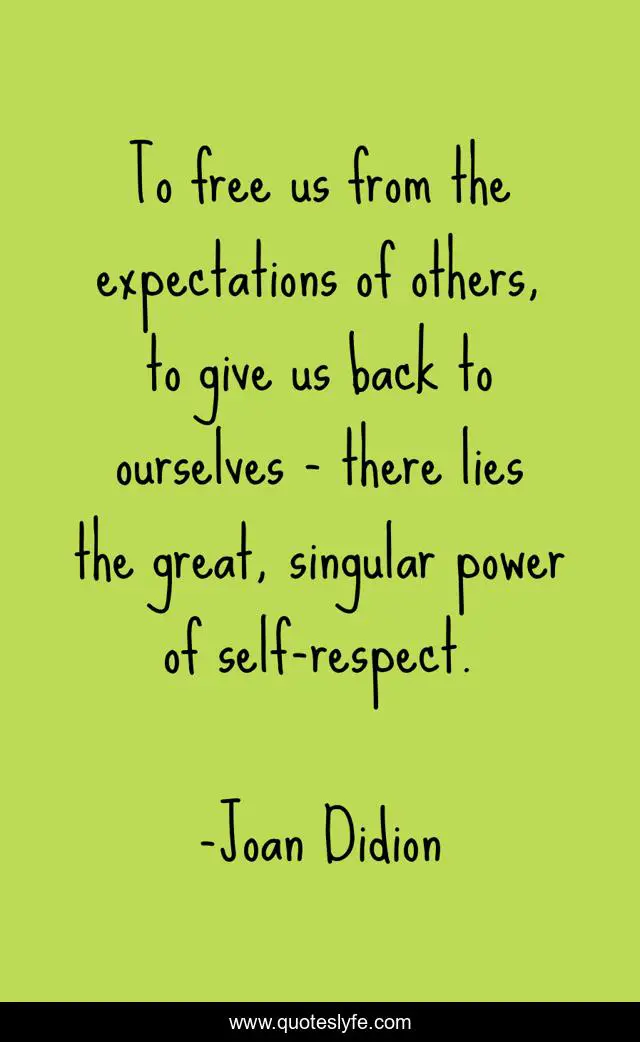 This page presents the quote "To free us from the expectations of others, to give us back to ourselves - there lies the great, singular power of self-respect.". Author of this quote is Joan Didion. This quote is about great, power, free,.