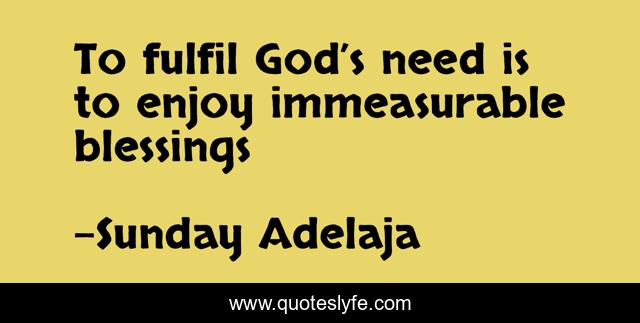 This page presents the quote "To fulfil God’s need is to enjoy immeasurable blessings". Author of this quote is Sunday Adelaja. This quote is about need, blessing, fulfilment,.