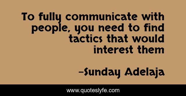This page presents the quote "To fully communicate with people, you need to find tactics that would interest them". Author of this quote is Sunday Adelaja. This quote is about ministration, life, blessing, tactics, finance, ministry, communication, work, communicate,.