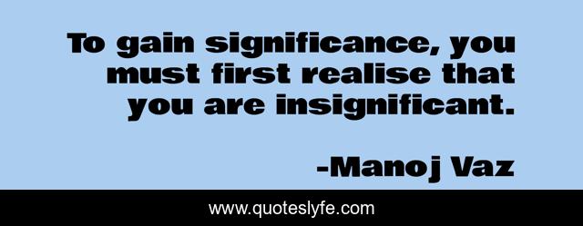 "Manoj Vaz Quotes." Quoteslyfe.com, 2025. Mon. 08 Dec. 2025. <https://www.quoteslyfe.com/quote/To-gain-significance-you-must-first-realise-105679>.