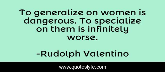 This page presents the quote "To generalize on women is dangerous. To specialize on them is infinitely worse.". Author of this quote is Rudolph Valentino. This quote is about dangerous, specialize, worse,.
