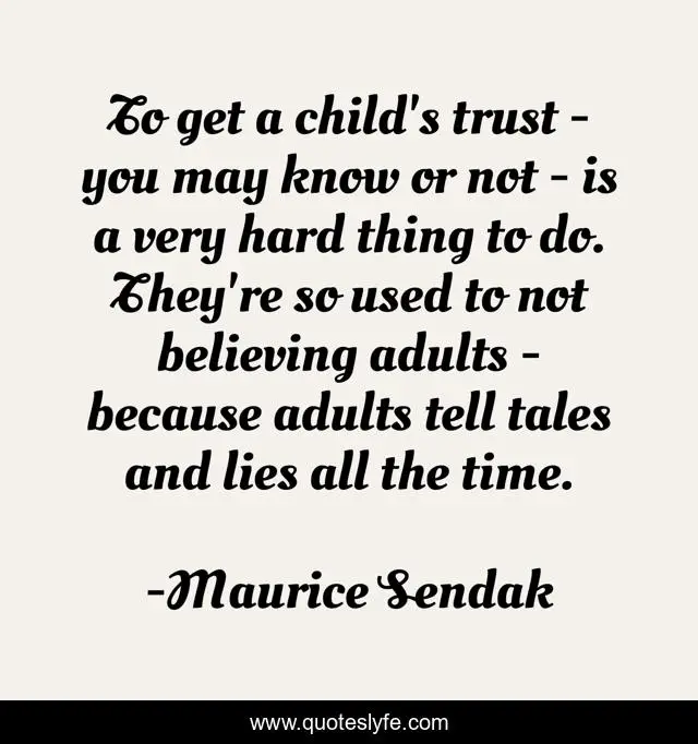 "Maurice Sendak Quotes." Quoteslyfe.com, 2025. Sat. 06 Dec. 2025. <https://www.quoteslyfe.com/quote/To-get-a-child-s-trust-you-315673>.