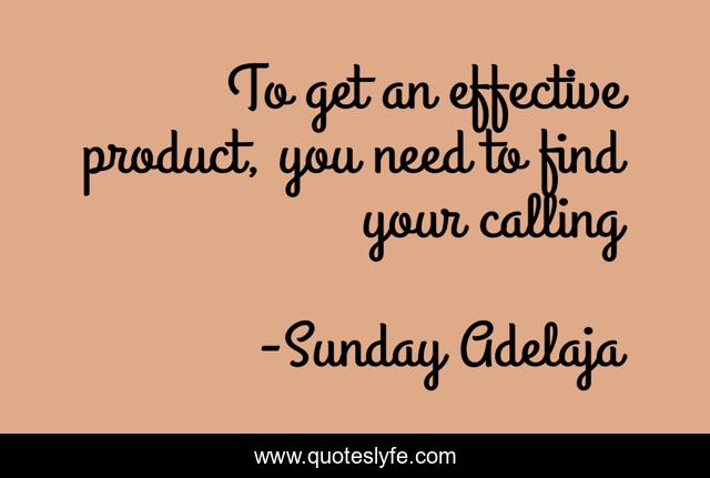 This page presents the quote "To get an effective product, you need to find your calling". Author of this quote is Sunday Adelaja. This quote is about life, productive, productivity, finance, effective, money, blessing, product, calling,.