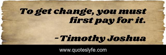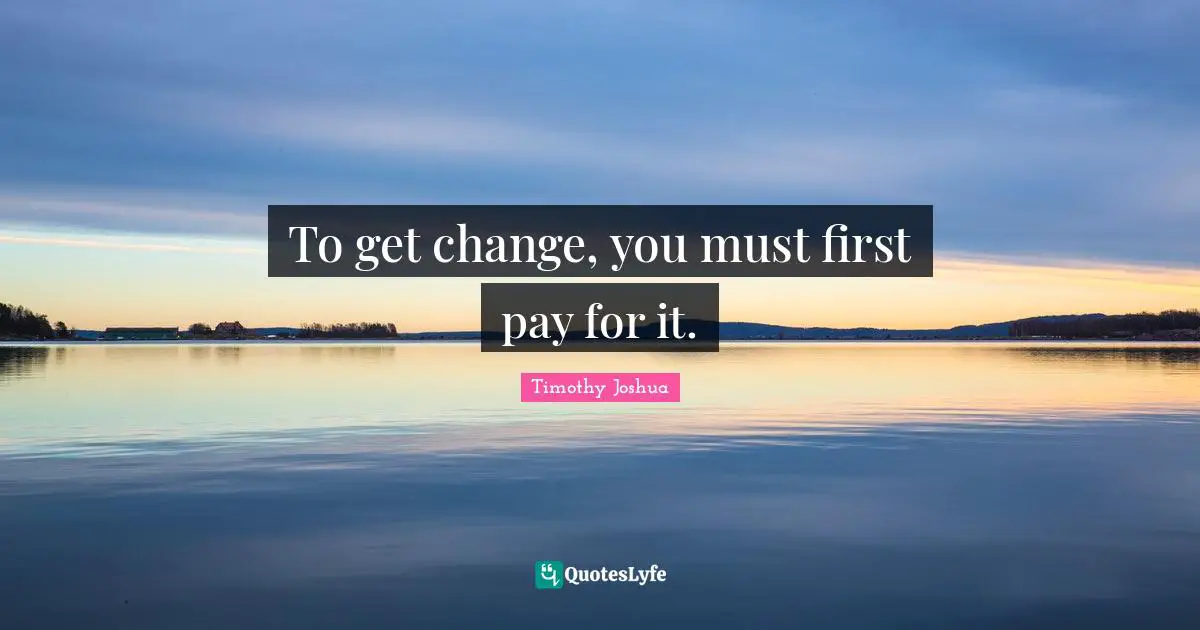"Timothy Joshua Quotes." Quoteslyfe.com, 2025. Thu. 25 Dec. 2025. <https://www.quoteslyfe.com/quote/To-get-change-you-must-first-pay-90346>.