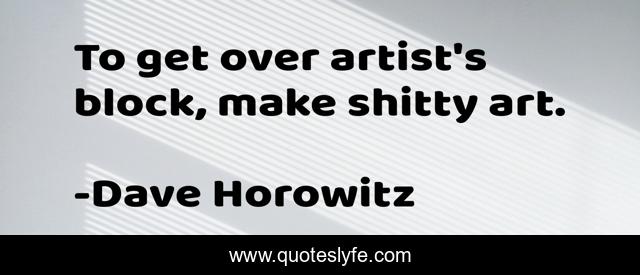 This page presents the quote "To get over artist's block, make shitty art.". Author of this quote is Dave Horowitz. This quote is about writers-block, writing-life, artists-block, dave-horowitz,.
