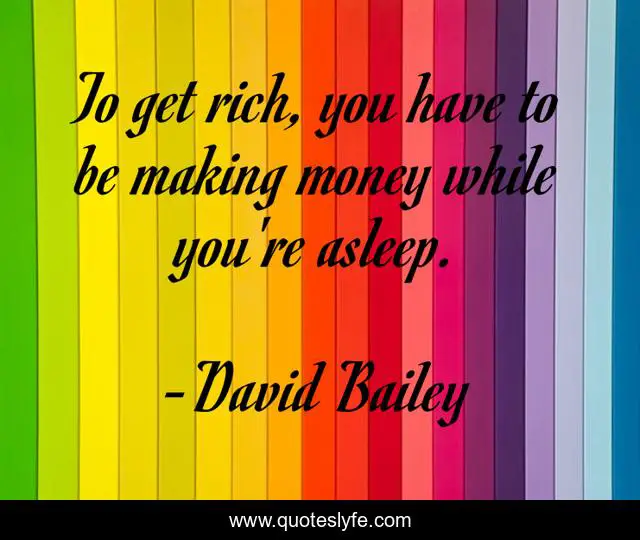 This page presents the quote "To get rich, you have to be making money while you're asleep.". Author of this quote is David Bailey. This quote is about making money, rich,.