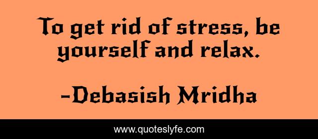 This page presents the quote "To get rid of stress, be yourself and relax.". Author of this quote is Debasish Mridha. This quote is about life, love, knowledge, inspirational, intelligence, philosophy, wisdom, quotes, affection,.