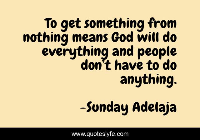 This page presents the quote "To get something from nothing means God will do everything and people don’t have to do anything.". Author of this quote is Sunday Adelaja. This quote is about godly, people,.