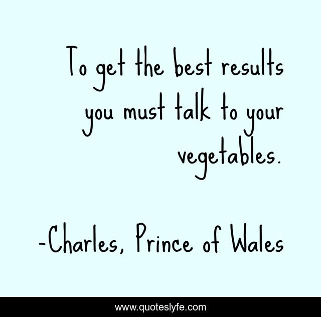 This page presents the quote "To get the best results you must talk to your vegetables.". Author of this quote is Charles, Prince of Wales. .