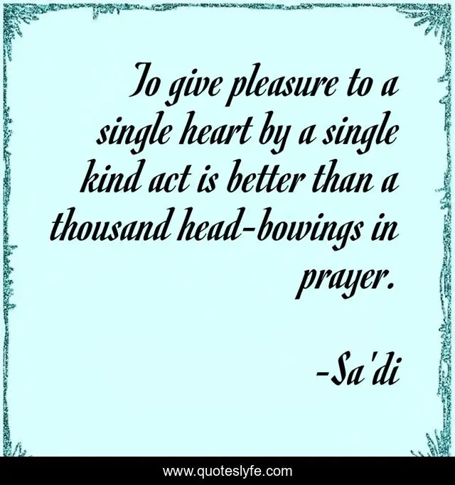 "Sa'di Quotes." Quoteslyfe.com, 2025. Mon. 08 Dec. 2025. <https://www.quoteslyfe.com/quote/To-give-pleasure-to-a-single-heart-268035>.