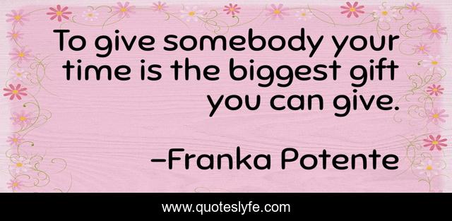 This page presents the quote "To give somebody your time is the biggest gift you can give.". Author of this quote is Franka Potente. This quote is about birthday, gift,.