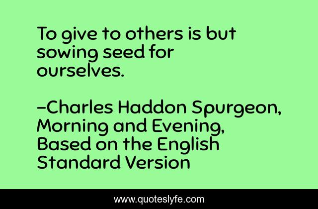 "Charles Haddon Spurgeon, Morning and Evening, Based on the English Standard Version Quotes." Quoteslyfe.com, 2025. Fri. 05 Dec. 2025. <https://www.quoteslyfe.com/quote/To-give-to-others-is-but-sowing-206021>.