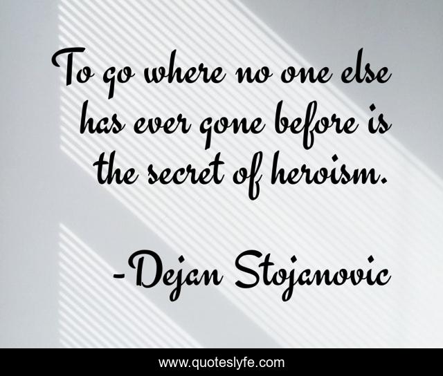 This page presents the quote "To go where no one else has ever gone before is the secret of heroism.". Author of this quote is Dejan Stojanovic. This quote is about literature, dejan-stojanovic, poetry, wisdom, quotes, secret, heroism, quotes-to-live-by, thoughts,.