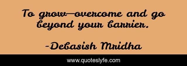 This page presents the quote "To grow—overcome and go beyond your barrier.". Author of this quote is Debasish Mridha. This quote is about overcoming-odds, how-to-grow, philosophy, debasish-mridha, grow, quotes, inspirational, go-beyond, enthusiasm,.