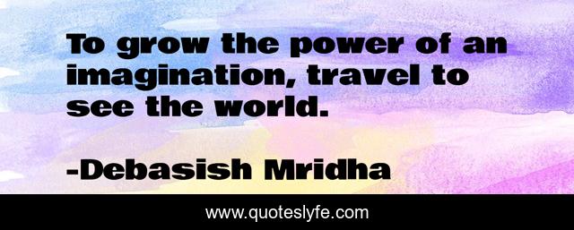 This page presents the quote "To grow the power of an imagination, travel to see the world.". Author of this quote is Debasish Mridha. This quote is about travel-the-world, imagination, debasish-mridha, philosophy, power-of-the-imagination, quotes, inspirational, enthusiasm, debasish-mridha-m-d,.