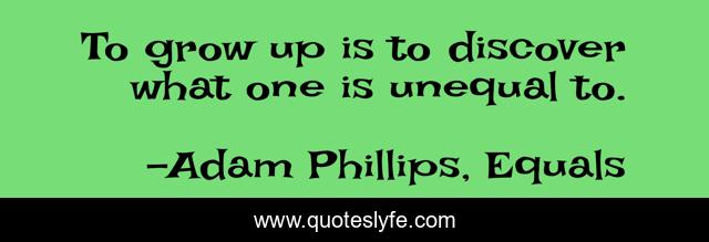 This page presents the quote "To grow up is to discover what one is unequal to.". Author of this quote is Adam Phillips, Equals. This quote is about equality, growing-up, discovery,.