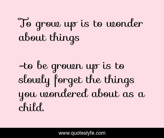 "to be grown up is to slowly forget the things you wondered about as a child. Quotes." Quoteslyfe.com, 2025. Fri. 05 Dec. 2025. <https://www.quoteslyfe.com/quote/To-grow-up-is-to-wonder-about-190794>.
