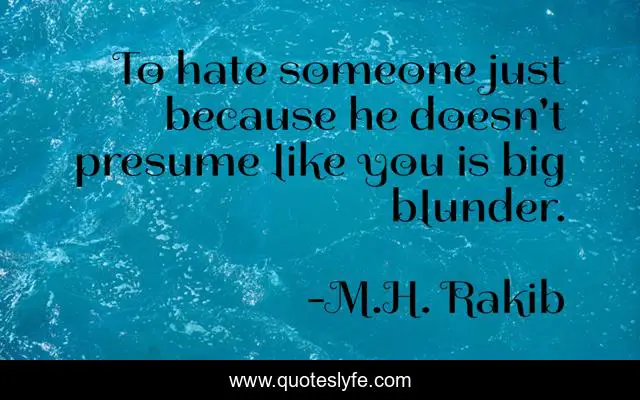 This page presents the quote "To hate someone just because he doesn't presume like you is big blunder.". Author of this quote is M.H. Rakib. This quote is about society, life, hate, presume, blunder,.