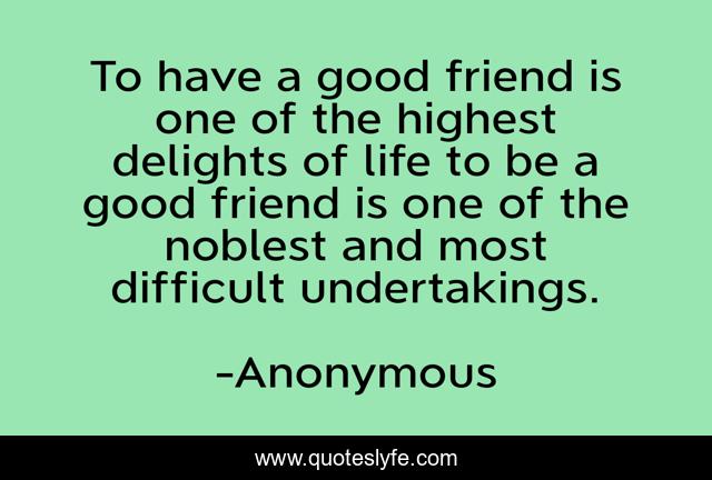 This page presents the quote "To have a good friend is one of the highest delights of life to be a good friend is one of the noblest and most difficult undertakings.". Author of this quote is Anonymous. .