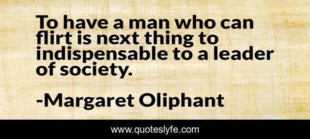This page presents the quote "To have a man who can flirt is next thing to indispensable to a leader of society.". Author of this quote is Margaret Oliphant. This quote is about man, leader, next,.