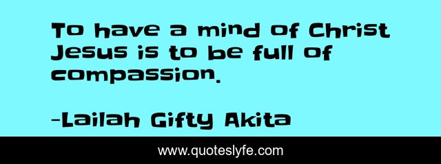 This page presents the quote "To have a mind of Christ Jesus is to be full of compassion.". Author of this quote is Lailah Gifty Akita. This quote is about compassion, jesus-christ, mind, inspirational, enthusiasm,.