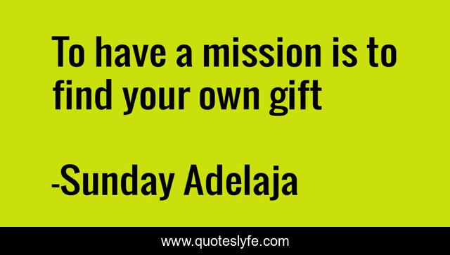 This page presents the quote "To have a mission is to find your own gift". Author of this quote is Sunday Adelaja. This quote is about self-discovery, talent, mission, gift,.