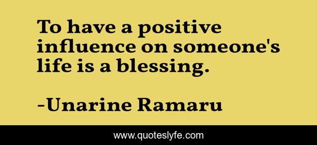This page presents the quote "To have a positive influence on someone's life is a blessing.". Author of this quote is Unarine Ramaru. This quote is about impact, mentor-and-student, positivity, influence, blessings, mentorship, friendship,.