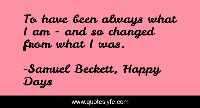 This page presents the quote "To have been always what I am - and so changed from what I was.". Author of this quote is Samuel Beckett, Happy Days. This quote is about self, change,.