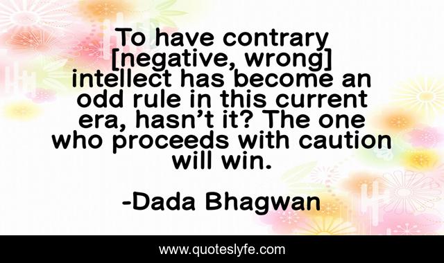 This page presents the quote "To have contrary [negative, wrong] intellect has become an odd rule in this current era, hasn’t it? The one who proceeds with caution will win.". Author of this quote is Dada Bhagwan. This quote is about spiritual, intellect,.