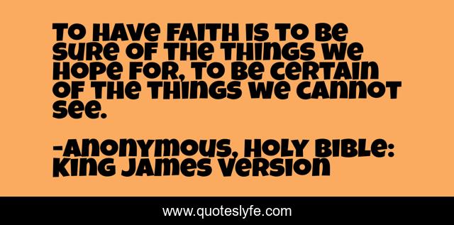 This page presents the quote "To have faith is to be sure of the things we hope for, to be certain of the things we cannot see.". Author of this quote is Anonymous, Holy Bible: King James Version. This quote is about faith, pleasing-to-god, hope, god,.