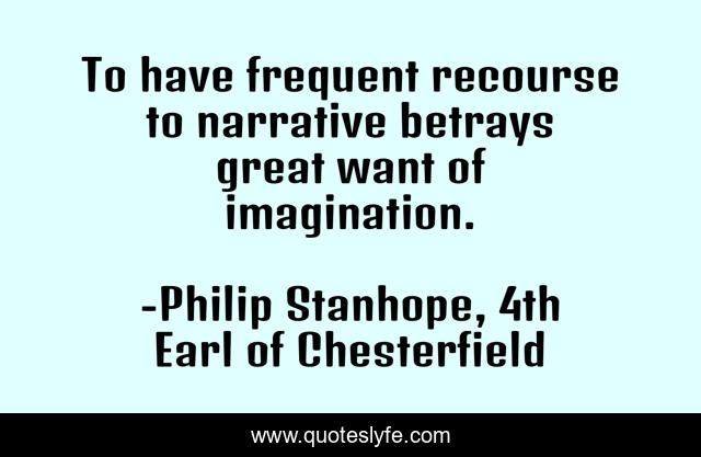 This page presents the quote "To have frequent recourse to narrative betrays great want of imagination.". Author of this quote is Philip Stanhope, 4th Earl of Chesterfield. This quote is about great, narrative,.