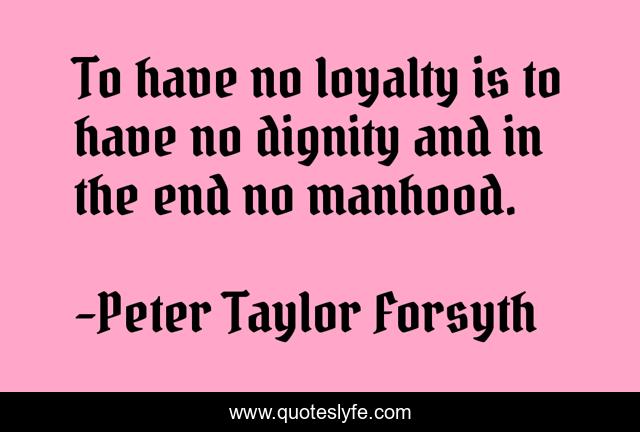 This page presents the quote "To have no loyalty is to have no dignity and in the end no manhood.". Author of this quote is Peter Taylor Forsyth. This quote is about commitment, belief,.