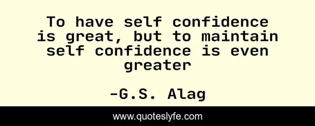 This page presents the quote "To have self confidence is great, but to maintain self confidence is even greater". Author of this quote is G.S. Alag. .