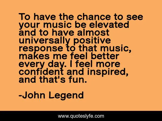 This page presents the quote "To have the chance to see your music be elevated and to have almost universally positive response to that music, makes me feel better every day. I feel more confident and inspired, and that's fun.". Author of this quote is John Legend. This quote is about positive, confidence, music, day,.