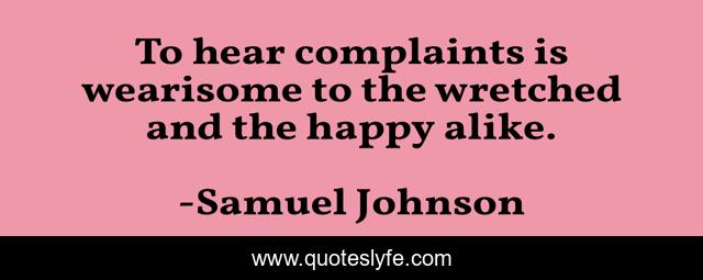 "Samuel Johnson Quotes." Quoteslyfe.com, 2025. Sun. 07 Dec. 2025. <https://www.quoteslyfe.com/quote/To-hear-complaints-is-wearisome-to-the-276075>.