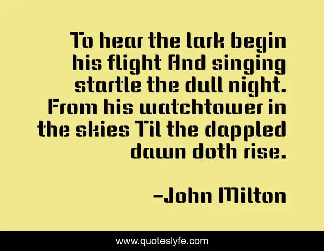 "John Milton Quotes." Quoteslyfe.com, 2025. Mon. 08 Dec. 2025. <https://www.quoteslyfe.com/quote/To-hear-the-lark-begin-his-flight-260177>.