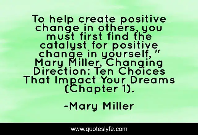 To help create positive change in others, you must first find the catalyst for positive change in yourself, " Mary Miller, Changing Direction: Ten Choices That Impact Your Dreams (Chapter 1).