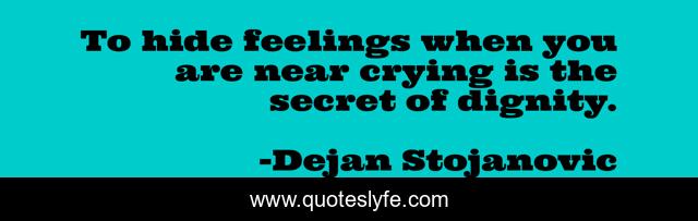 This page presents the quote "To hide feelings when you are near crying is the secret of dignity.". Author of this quote is Dejan Stojanovic. This quote is about dignity, literature, hide, dejan-stojanovic, poetry, feelings, quotes, secret, crying,.