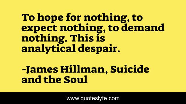 "James Hillman, Suicide and the Soul Quotes." Quoteslyfe.com, 2025. Mon. 08 Dec. 2025. <https://www.quoteslyfe.com/quote/To-hope-for-nothing-to-expect-nothing-19247>.