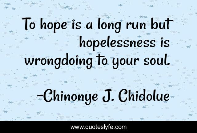 "Chinonye J. Chidolue Quotes." Quoteslyfe.com, 2025. Sun. 07 Dec. 2025. <https://www.quoteslyfe.com/quote/To-hope-is-a-long-run-but-258814>.