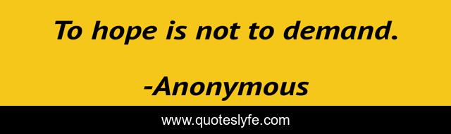 This page presents the quote "To hope is not to demand.". Author of this quote is Anonymous. .