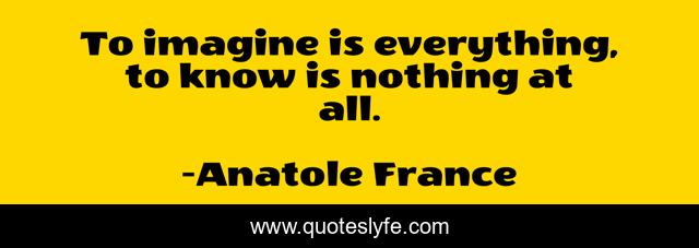 This page presents the quote "To imagine is everything, to know is nothing at all.". Author of this quote is Anatole France. This quote is about nothing, everything,.