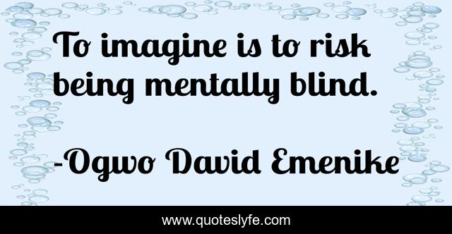 This page presents the quote "To imagine is to risk being mentally blind.". Author of this quote is Ogwo David Emenike. This quote is about imagination, imagine,.
