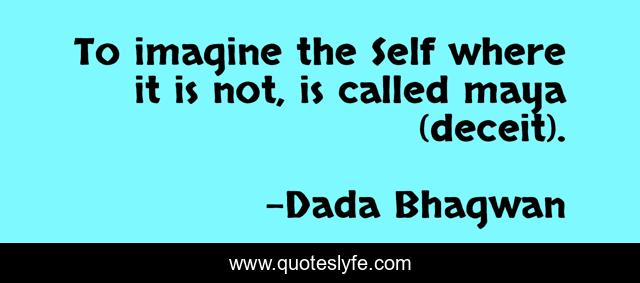 This page presents the quote "To imagine the Self where it is not, is called maya (deceit).". Author of this quote is Dada Bhagwan. This quote is about relation-between-self-deceit, spiritual,.