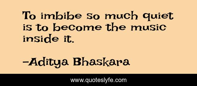 This page presents the quote "To imbibe so much quiet is to become the music inside it.". Author of this quote is Aditya Bhaskara. This quote is about solitude, quiet,.