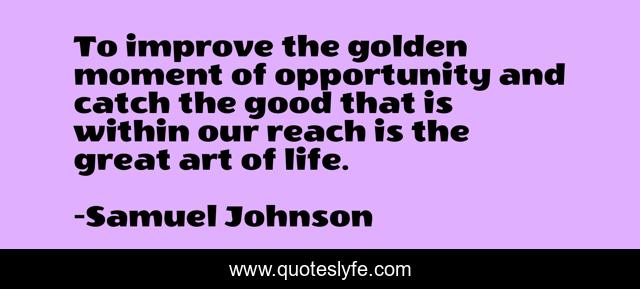 This page presents the quote "To improve the golden moment of opportunity and catch the good that is within our reach is the great art of life.". Author of this quote is Samuel Johnson. .