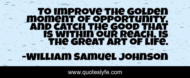 This page presents the quote "To improve the golden moment of opportunity, and catch the good that is within our reach, is the great art of life.". Author of this quote is William Samuel Johnson. This quote is about life, good, great,.