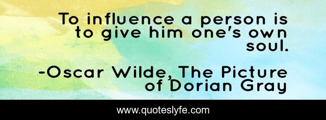This page presents the quote "To influence a person is to give him one's own soul.". Author of this quote is Oscar Wilde, The Picture of Dorian Gray. .
