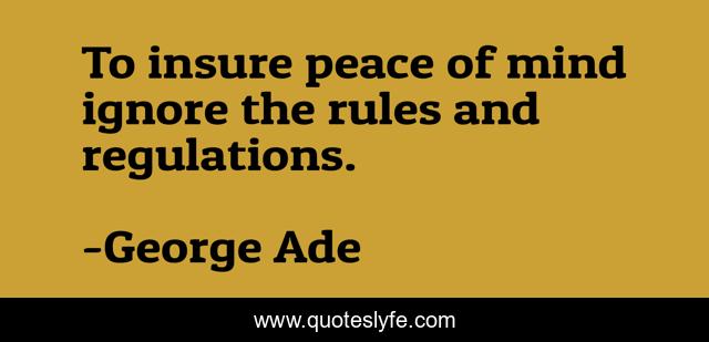 This page presents the quote "To insure peace of mind ignore the rules and regulations.". Author of this quote is George Ade. This quote is about rules, mind, peace of mind,.